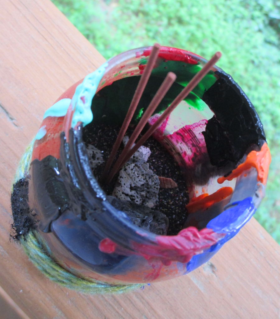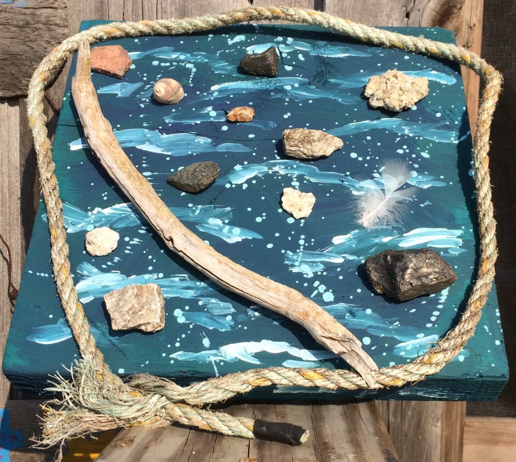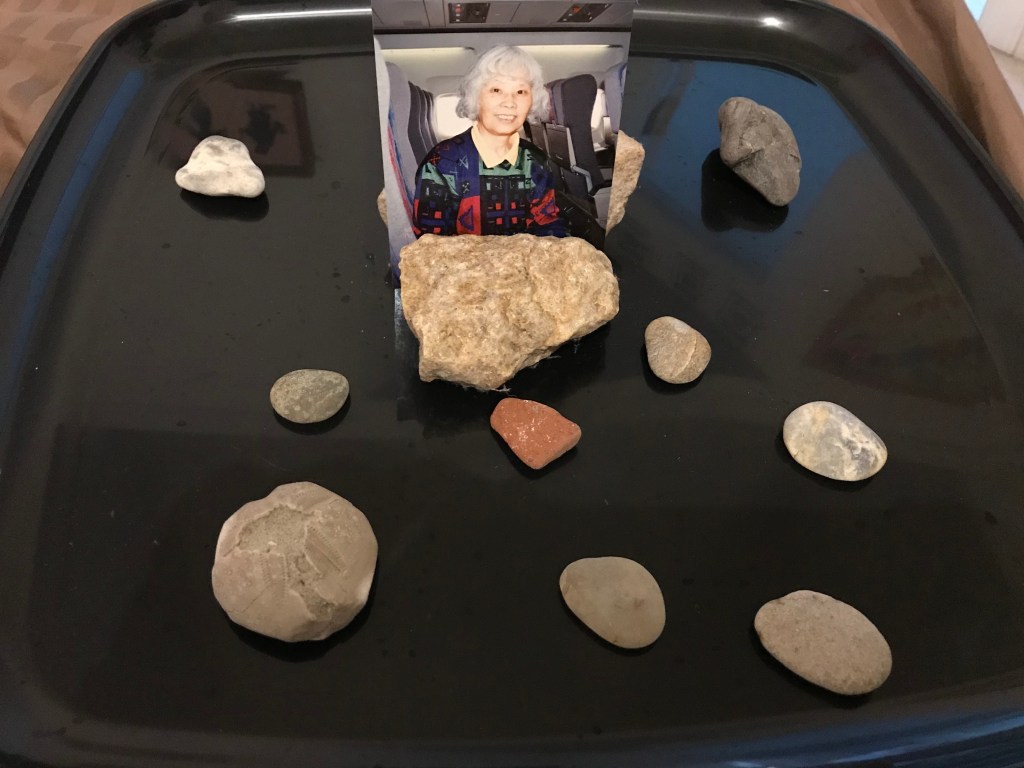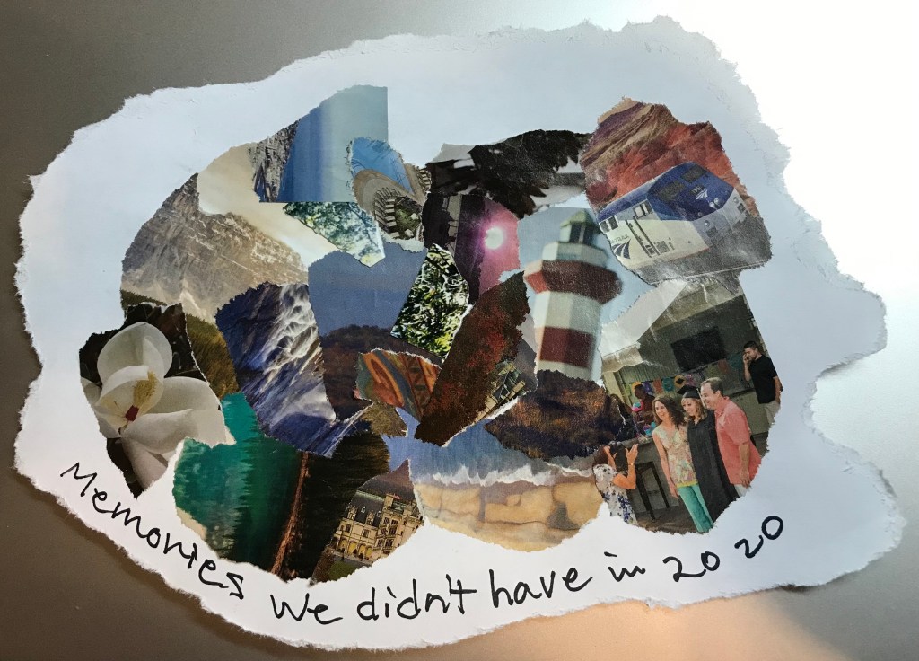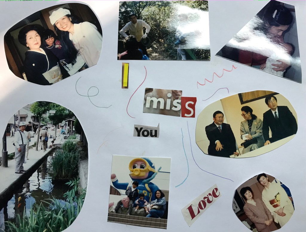 We hardly gathered with friends or traveled during the pandemic. Many events were cancelled. I do not have pictures of memories that did not happen. So, I ripped out some images from magazines. As I created the collage, it felt like the year of broken dreams.We enjoy going back to Japan from time to time to visit our family and friends. The pandemic made it not safe to travel to Japan, particularly because our family there is aging. I cut old photos in my parents’ old albums to create a collage. I do not know these people, but they remind me of my native country I have not visited for a while.My mother died in 1994, but her memories came back many times during the pandemic. She grew up in the southern part of Japan near the ocean and enjoyed swimming. I held up her photo between two rocks and scattered rocks and a sand dollar fossil found at the beach on a plastic disposable sandwich tray. It felt like building a zen garden. She hardly talked about her life. I wish I could have known her better. I wrote about finding her notes in an unexpected place here.My youngest daughter and I have been spending a week on a tiny island in the summer for the last several years. In 2019, I created this art with found objects, glue, and paints. It was my expressive arts work to say good bye to the beautiful place and our wonderful time. We did not know that we would not go back there in 2020. We don’t know if we can go there in 2021. I created this Container of Self as part of an Expressive Arts Therapy class a few years ago. Along with rocks, shells, and other things, I included my father’s cremains (bones and ashes) and my mother’s old yarn to honor their memories living in me. Three Japanese incense sticks signify our family of three. I am the only one left now. You can read more about this art here.
