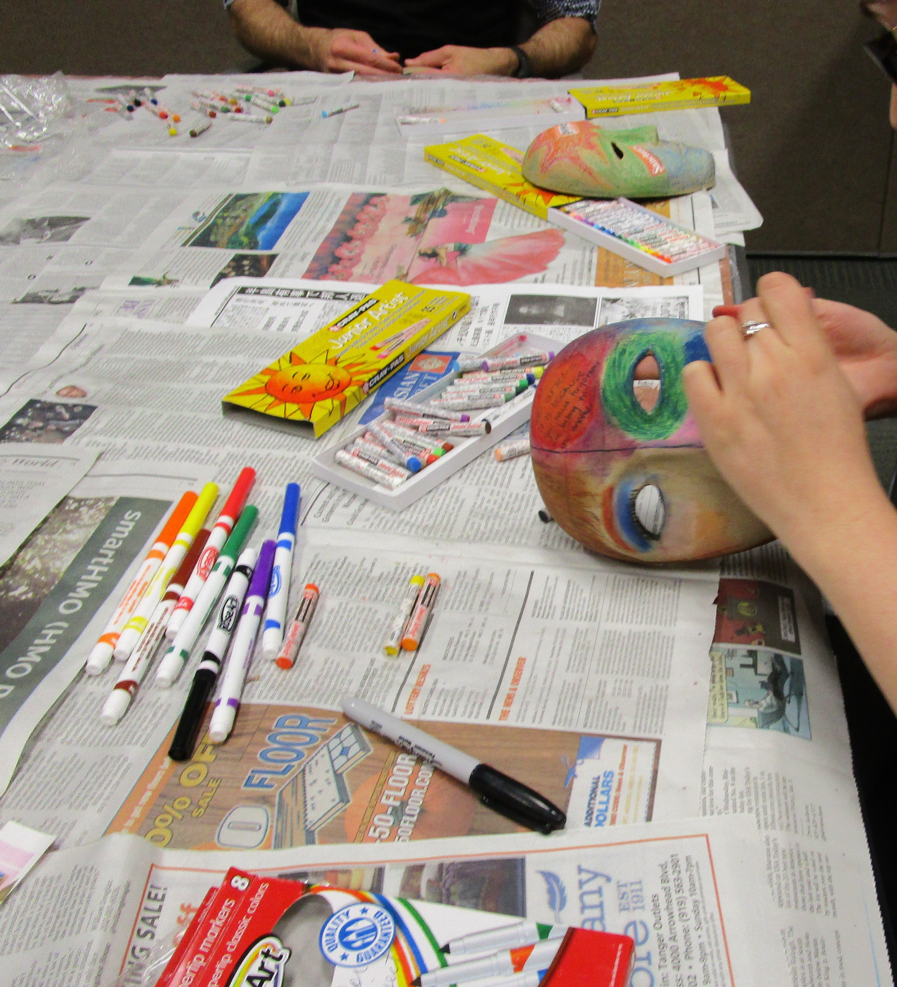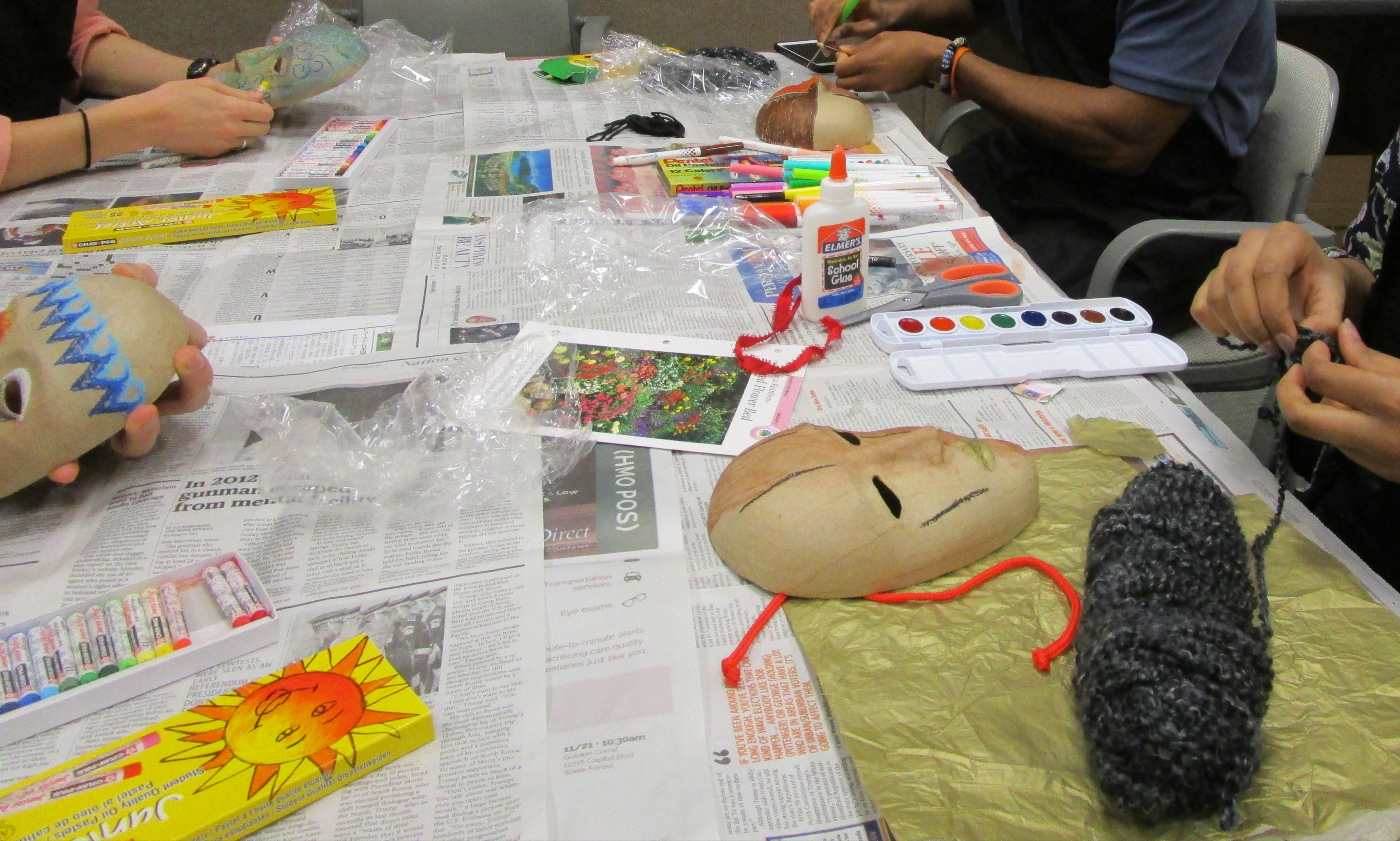Healing with Arts workshops: Mask making or doll making with recycled fabric and story sharing.